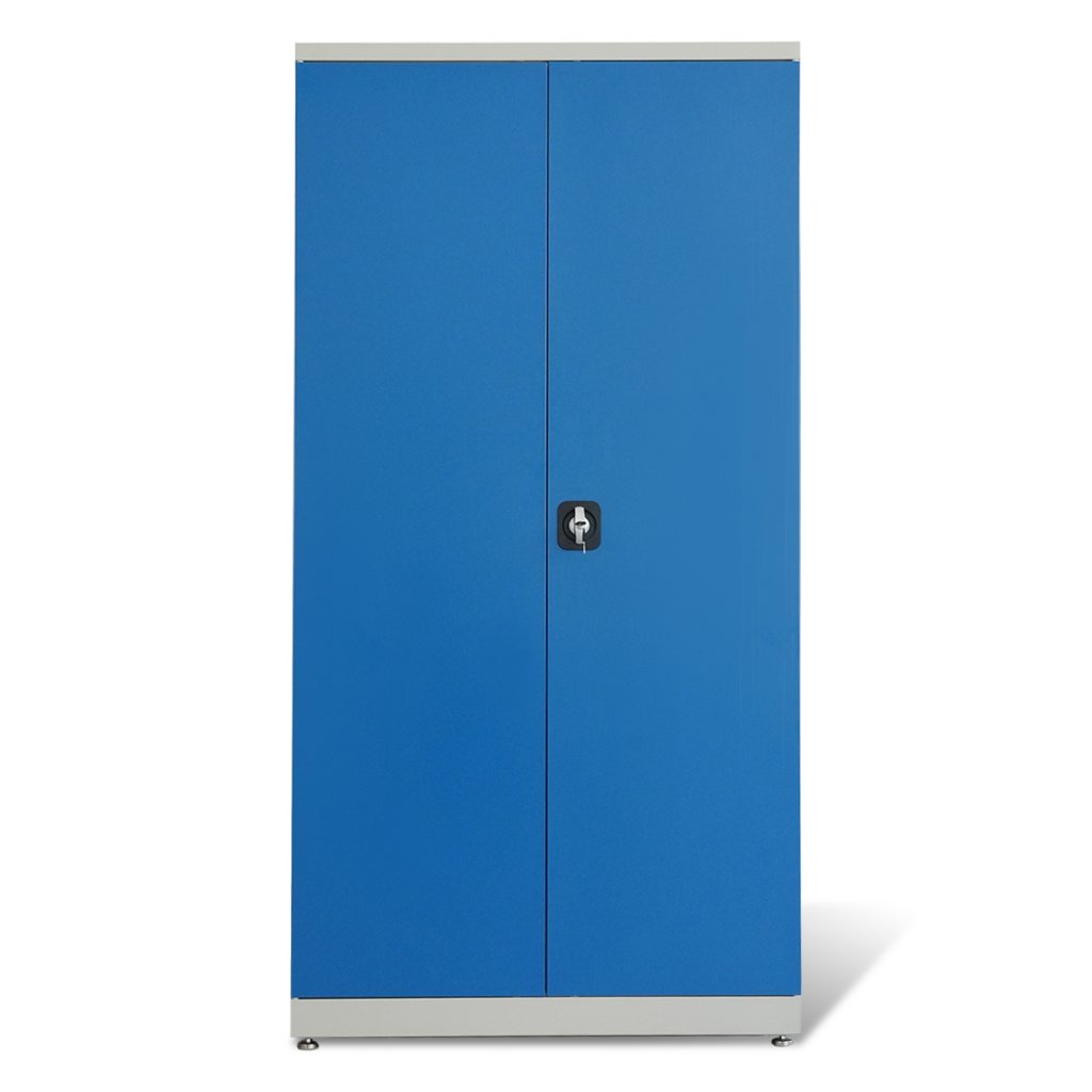 Plåtskåp 2000x1000x500 grå med blå dörrar